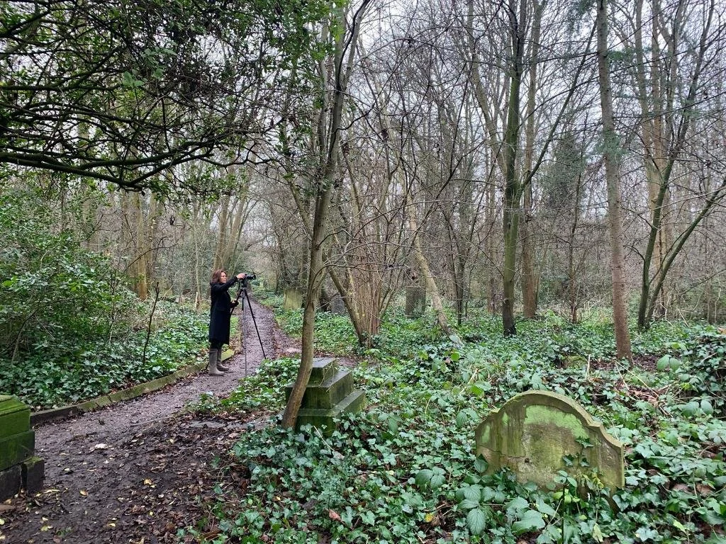 Our volunteering carries on with details below about the opportunities. Volunteering with us is a great opportunity to do something good outdoors. Lynn Dennison, our videographer, can be seen in the image on the right filming Abney Park on a cold January day. (She's looking to interview couples who met or had their first dates in the park. Is that you? Email us.)